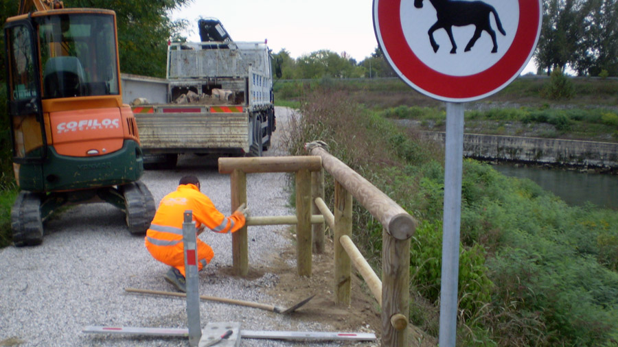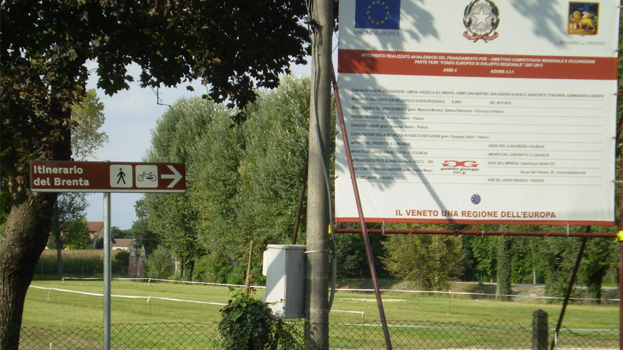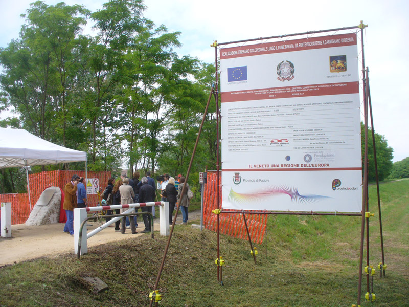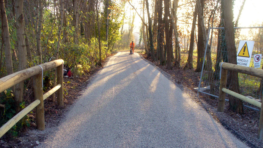 Realizzazione dell'itinerario ciclopedonale lungo il fiume Brenta da Pontevigodarzere a Carmignano di Brenta, per una lunghezza complessiva di 38 chilometri e 9 comuni attraversati (Padova, Vigodarzere, Limena, Piazzola sul Brenta, Campo San Martino, Grantorto, San Giorgio in Bosco, Fontaniva e Carmignano di Brenta). Il tracciato corre sulle sommità arginali lungo la riva sinistra del Brenta da Padova a Limena, per poi passare nelle aree golenali della riva destra tra Piazzola sul Brenta e Carmignano di Brenta. La finitura superficiale che è stata realizzata è di tipo ecologico, cosa che ha consentito di ottenere una pavimentazione di colore e aspetto naturale che non altera i valori paesaggistici esistenti (colore degli inerti). Tale finitura si realizza tramite la realizzazione in sito di pavimentazione con emulsione bituminosa e graniglie stese a strati successivi, utilizzando inerti aventi pezzature omogenee e compenetranti, tipici della zona oggetto dell’intervento.